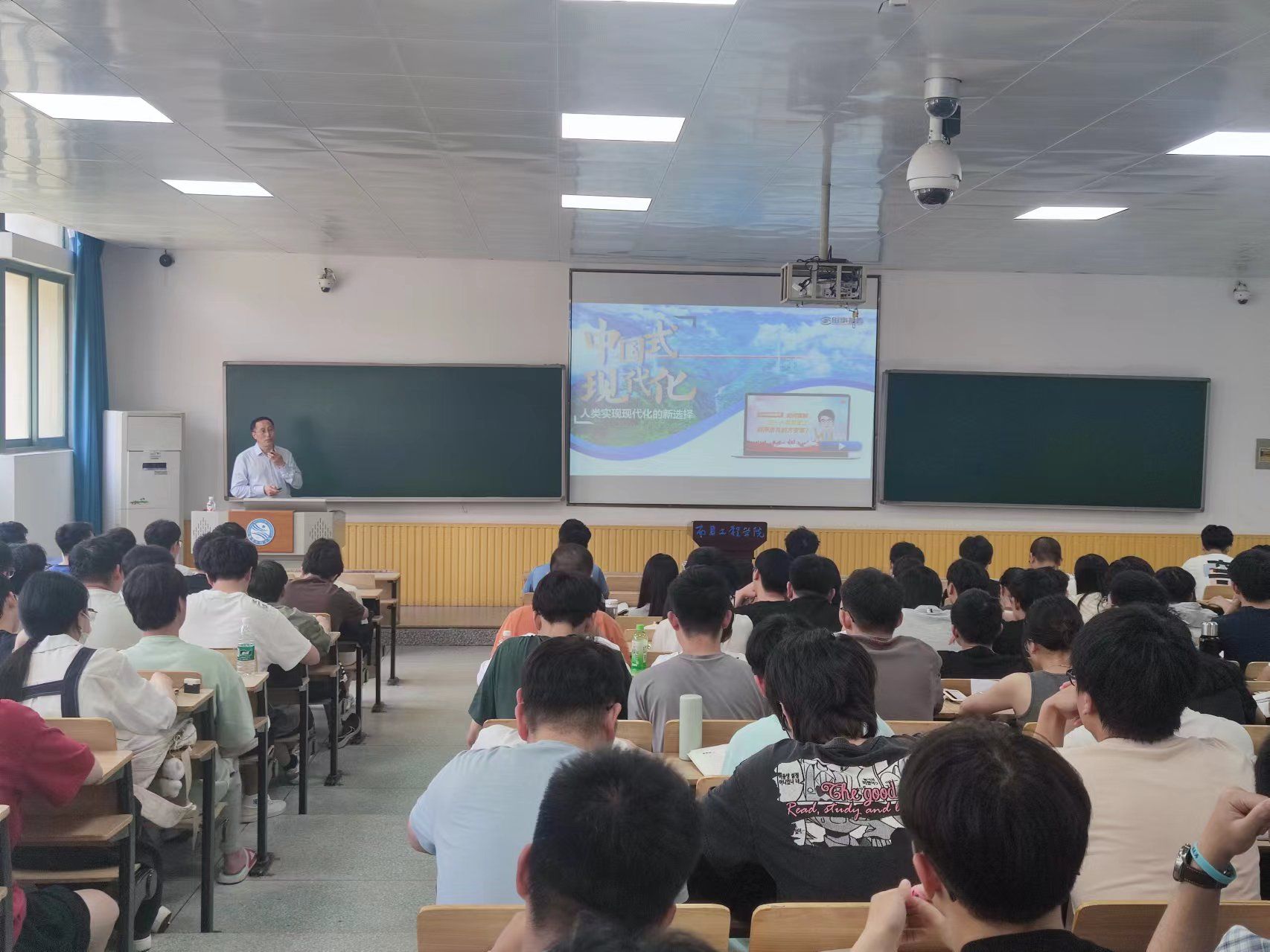 刘祖文为2021级水利水电工程专业、水文与水资源专业的学生们讲授了一堂生动精彩的《形势与政策》课。课堂上,他以嫦娥六号和身边事、国家事为切入点,形象具体地讲授了什么是现代化以及中国式现代化带来的新图景,加深学生对中国式现代化的了解。他强调,作为新时代的青年学生,要树立正确的世界观、人生观和价值观,积极参与校园文化建设、科技创新和文化传承,努力培养国际视野,为实现中华民族伟大复兴贡献力量。刘祖文还与学生们互动交流,鼓励同学们积极思考、勇于表达,加强实践锻炼,不断提高思维能力和创新能力。