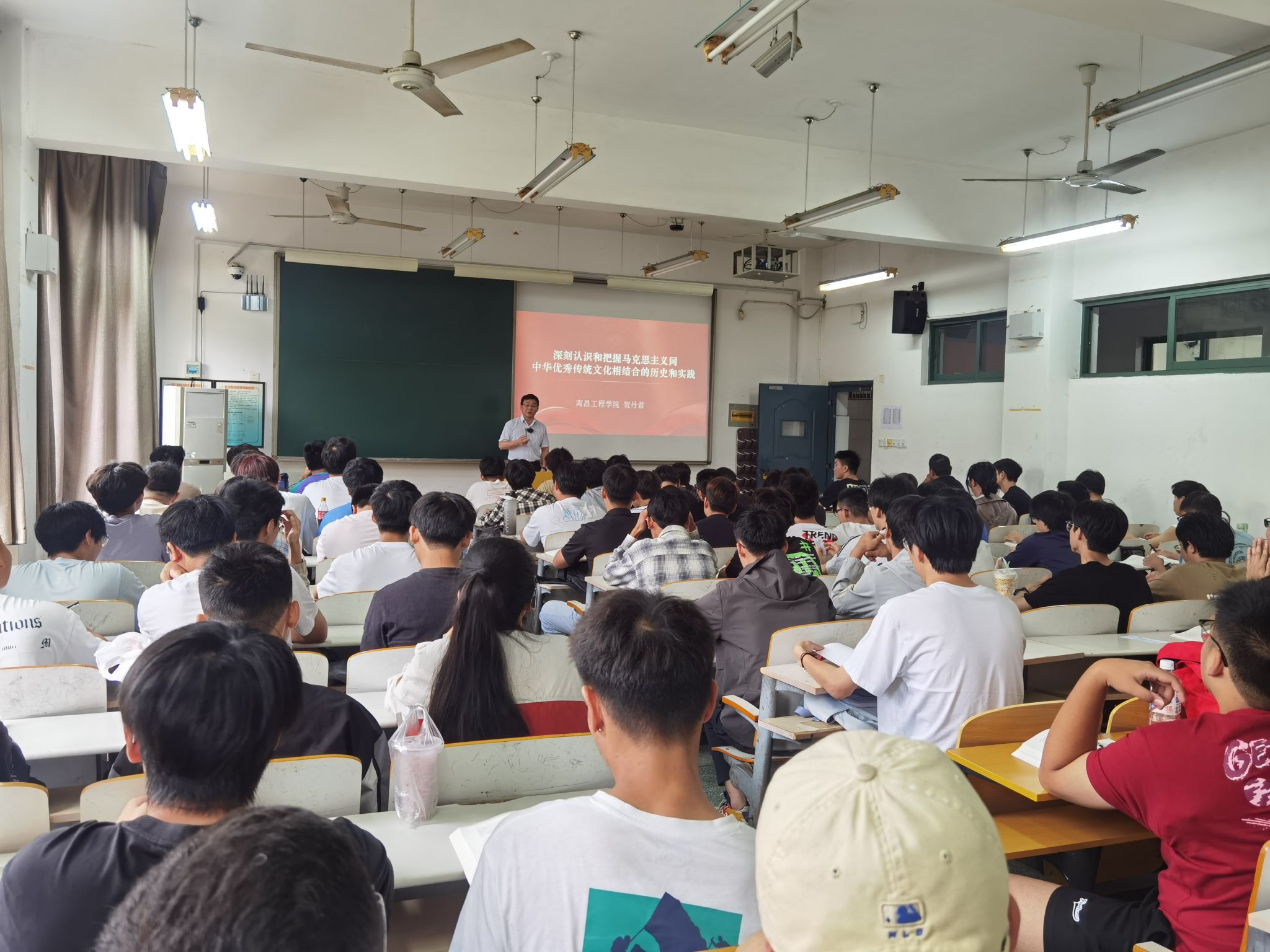 5月31日,校党委委员、副校长贺丹君在教学南楼B204教室,以“深刻认识和把握马克思主义同中华优秀传统文化相结合的历史和实践”为主题,为22级道路桥梁与渡河工程专业的同学们讲授思想政治理论课。