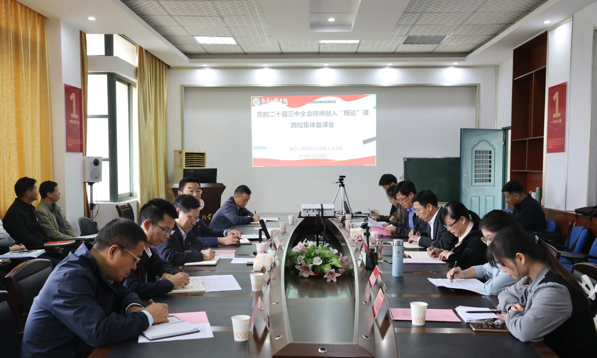 10月29日,党的二十届三中全会精神融入“概论”课教学跨校集体备课会在明理楼(北A410)采取线上+线下相结合的方式举办,深入学习贯彻党的二十届三中全会精神,交流分享党的二十届三中全会精神融入“概论”课教学的心得和经验,高质量推进新时代思政课改革创新。校党委书记汪胜前,副校长陆伟锋,教务处相关负责人、教育评估监测中心督导员代表,四川大学冯兵教授,江西服装学院、江西工业职业技术学院、江西水利职业学院等大中小学思政课一体化建设共同体单位相关负责人及我校马克思主义学院和各合作单位思政课教师骨干共200余人参加备课会。