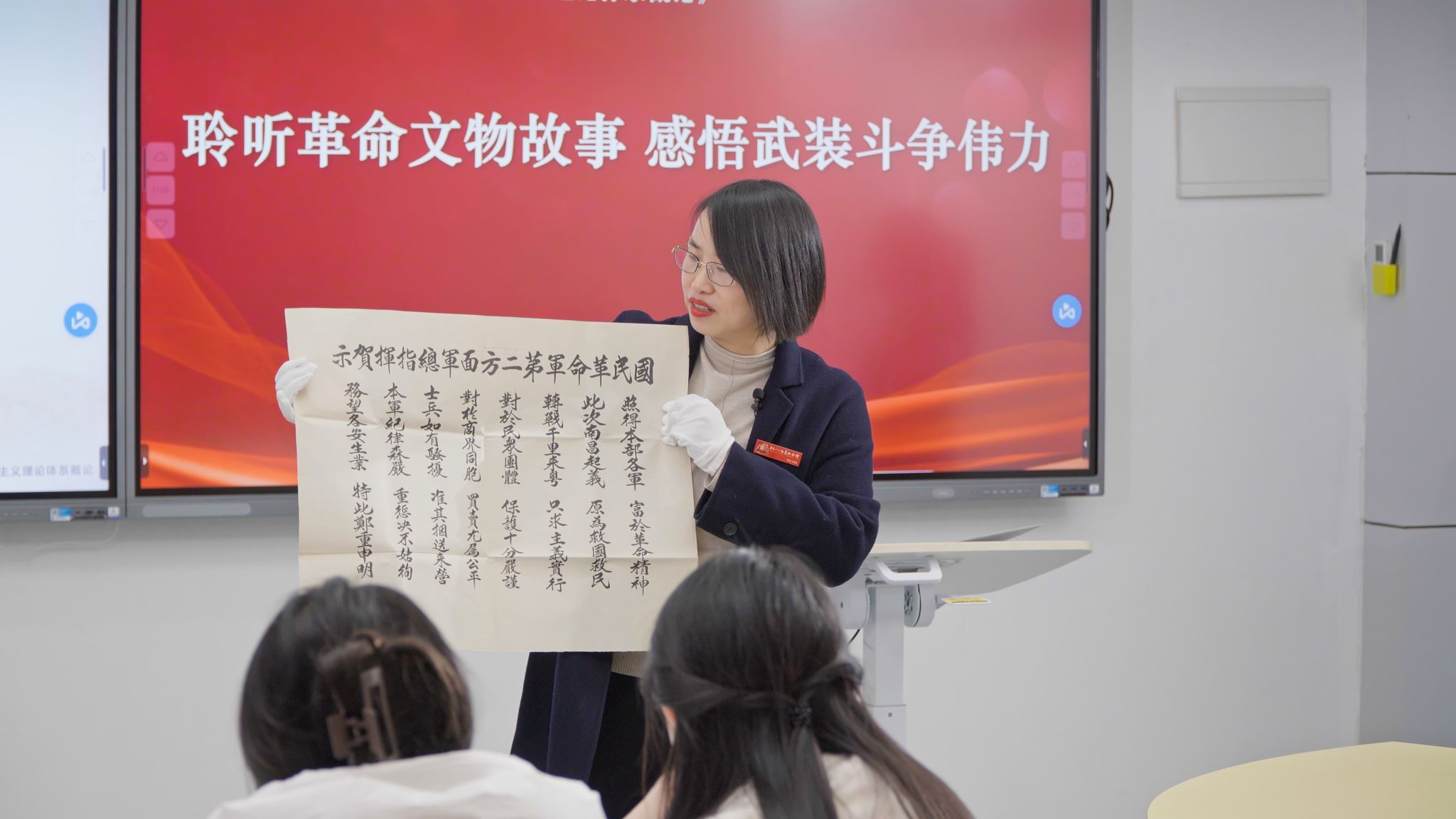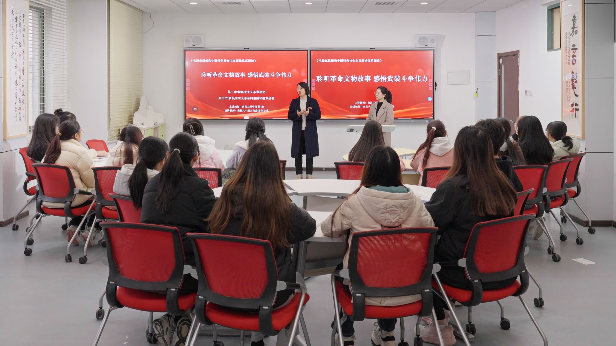 近期马克思主义学院邀请江西红色资源开发与教育研究中心研究人员、南昌八一起义纪念馆陈列保管部主任刘小花走进“概论”课堂,与我校“概论”课教师钟荣共同讲授课程专题——新民主主义革命理论。刘小花主任将纪念馆中的革命文物“搬进”课堂,讲述革命文物背后的革命故事,实现文物和学生“面对面”对话。钟荣老师采取“问题链”的教学方式,结合专题教学重点和理论难点,讲清楚“为什么武装斗争是中国革命的重要法宝”的问题。两位老师交替走上讲台,一人讲故事,一人讲学理,一个课堂,双师联动,师生互动,课堂气氛生动而又热烈,课堂教学效果显著。课程结束后,刘小花主任还与同学们进行了深入的交流,解答同学们关于南昌八一起义的诸多问题。