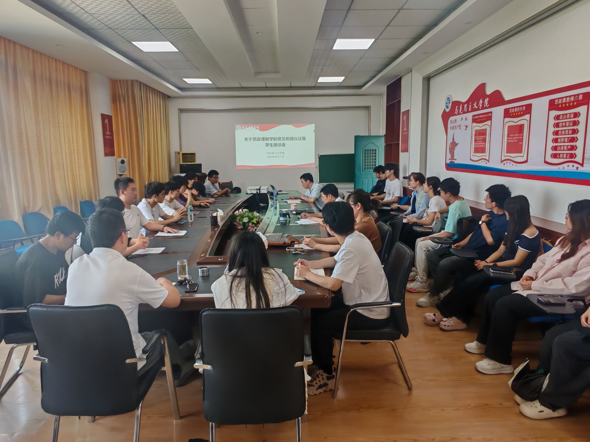 6月17日上午,马克思主义学院在北A410举办思政课教学学生座谈会,倾听学生对于教学工作的意见建议,推进深入贯彻中央八项规定精神学习教育走深走实,持续深化作风建设。学院全体班子成员、教研室主任、学生代表共40余人参加活动。