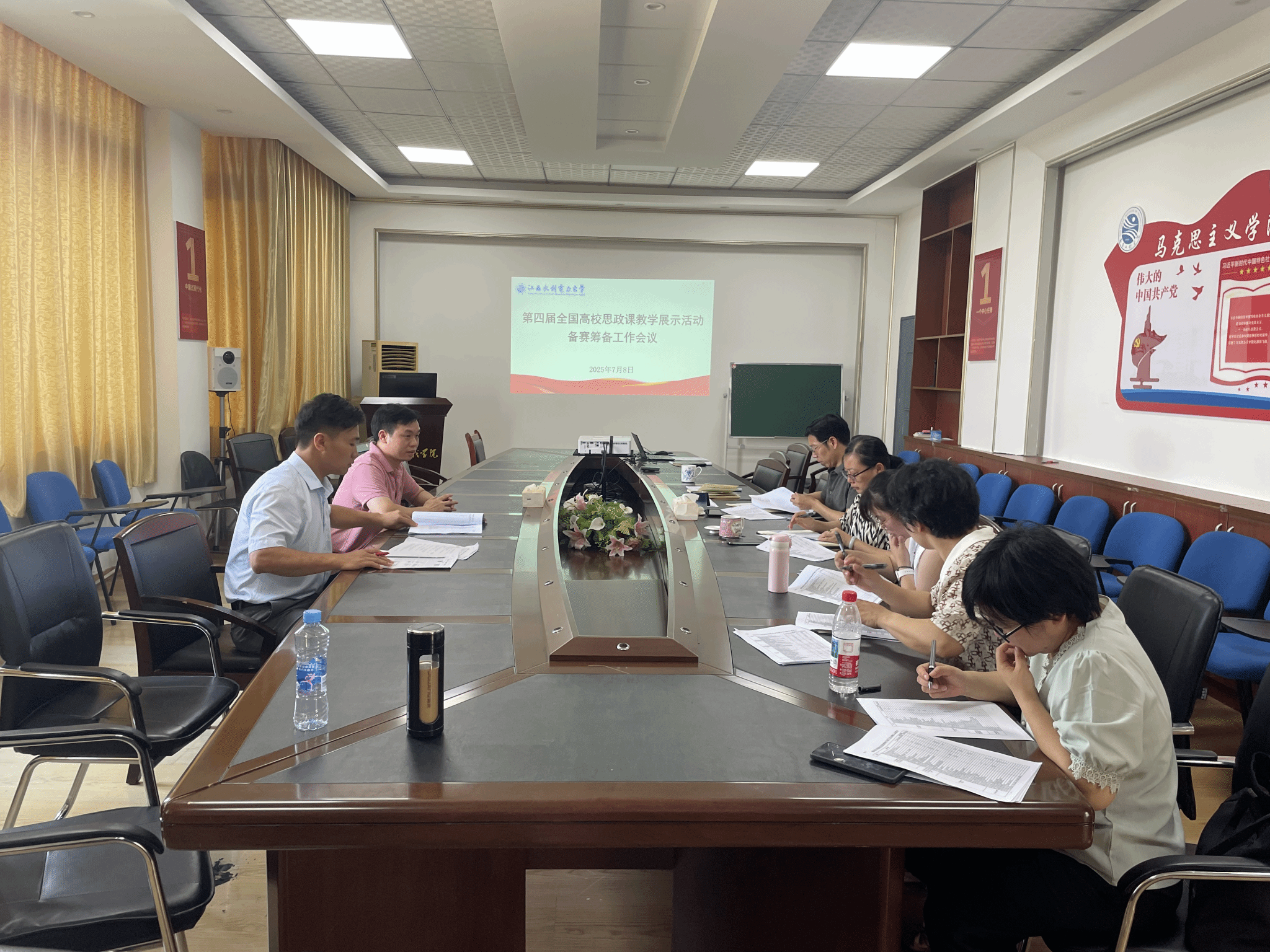 为充分做好备赛工作,7月8日,马克思主义学院在教学北楼A410会议室召开第四届全国高校思政课教学展示活动备赛筹备工作会议。学院领导班子、备赛团队成员参加会议。