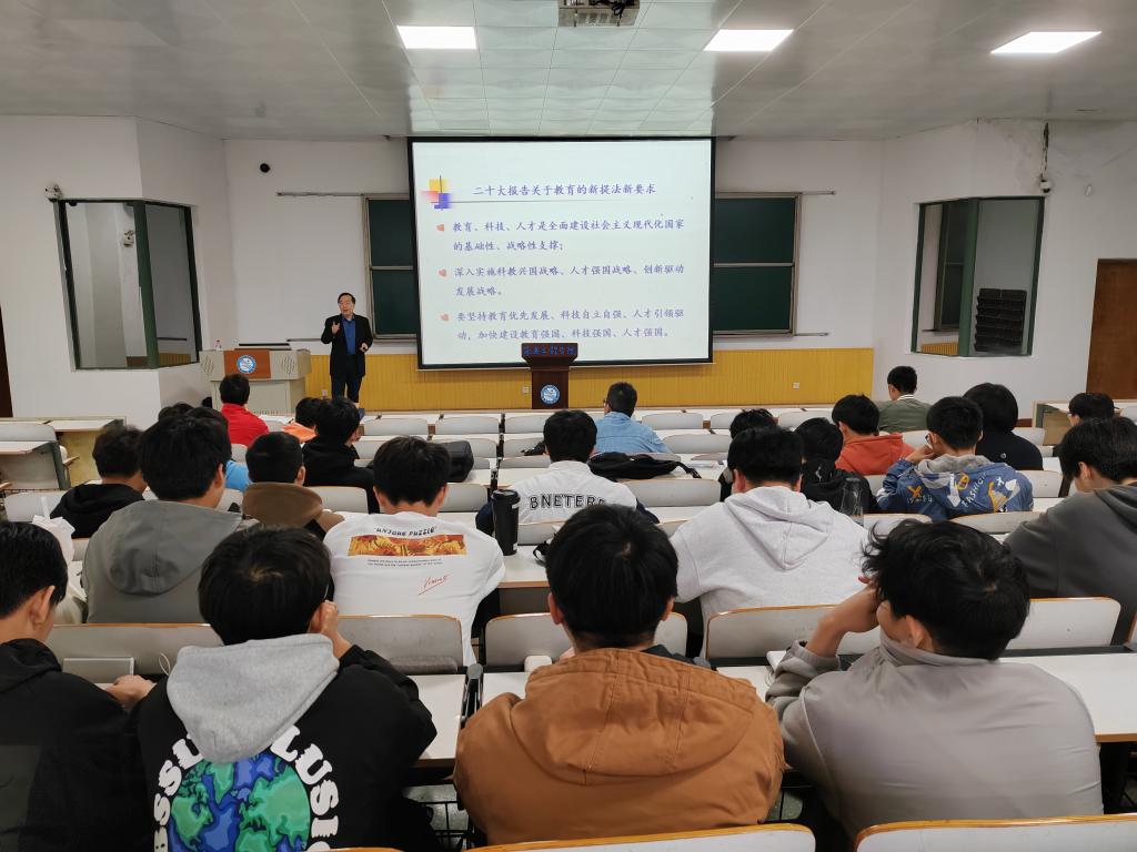 樊后保结合自身学习党的二十大精神的心得体会,围绕党的二十大报告关于教育的新提法新要求和习近平总书记关于教育对外开放的重要论述,从我国高等教育国际化的历史背景、改革开放以来我国高等教育国际化历程、高等教育国际化推进举措与进展成效等方面,用纵览古今、横观中外的典型案例进行深入阐释。并希望同学们将来成为拥有坚实的理学基础、过硬的实践能力和具有国际视野的复合型人才。(文/图 张荣富)