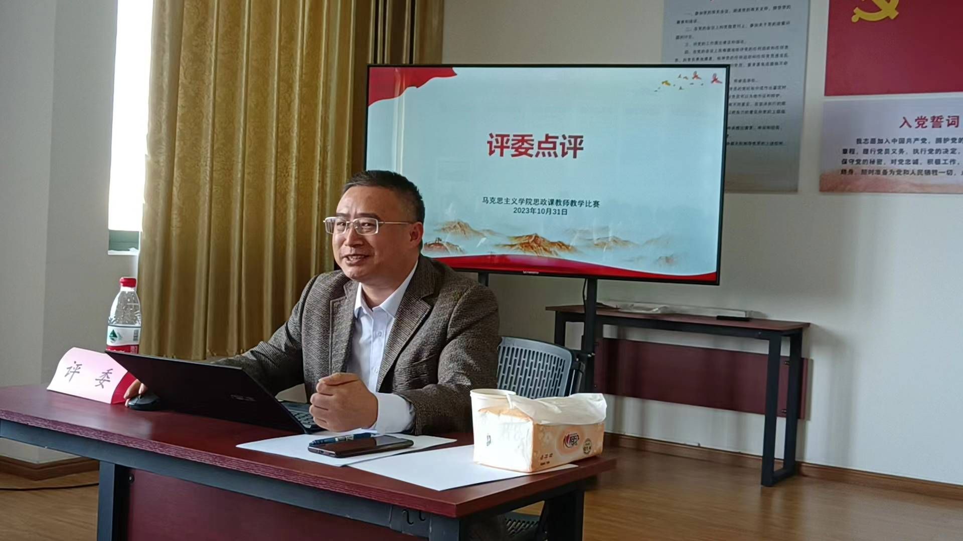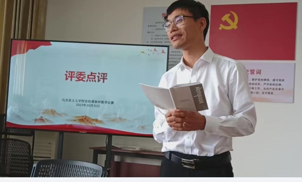 为进一步提升我校思想政治理论课教学水平,发挥赛事风向标作用,马克思主义学院于10月31日在明理楼A510举行2023年思政课、红色文化课程教学比赛初赛。学院邀请江西财经大学马克思主义学院院长刘晓泉教授、江西师范大学马克思主义学院副院长王钰鑫教授作为评委进行点评和指导,马克思主义学院全体教职工、部分兼职思政课教师到场观摩。
