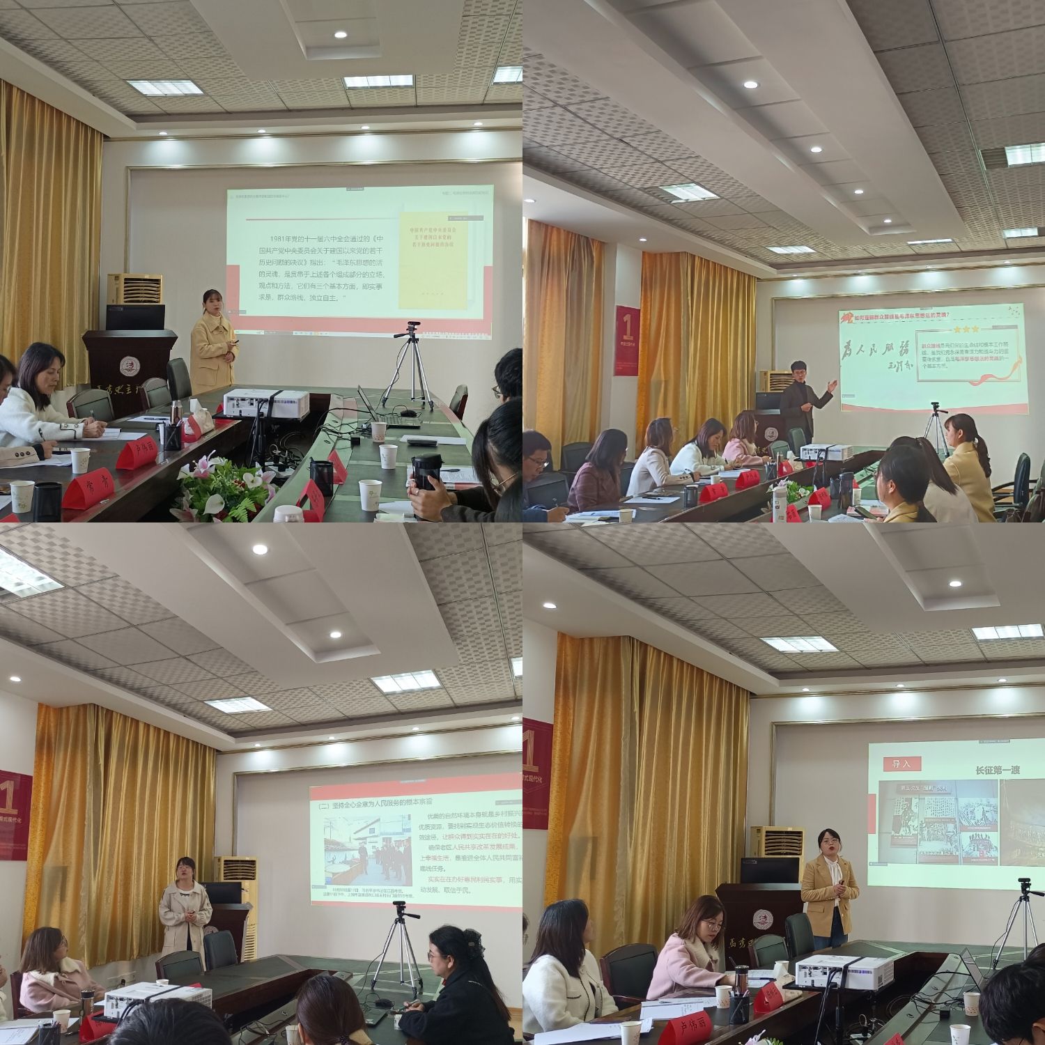 本次集体备课会主题为:习近平总书记考察江西重要讲话精神融入专题“毛泽东思想及其历史地位”教学。来自江西服装学院马克思主义学院教师陈放香、江西工业职业技术学院马克思主义学院教师陈舒雄、江西生物科技职业学院教师李茹茵和江西传媒职业学院思政课教学部教师方丽卿,围绕“毛泽东思想活的灵魂”进行同课异构教学展示。南昌航空大学马克思主义学院副院长常青、南昌工程学院马克思主义学院副院长陈娇云、江西科技职业学院思政部副主任卢伟丽、江西水利职业学院思政部“概论”教研室主任傅国英对四位教师的教学展示进行了交流研讨。