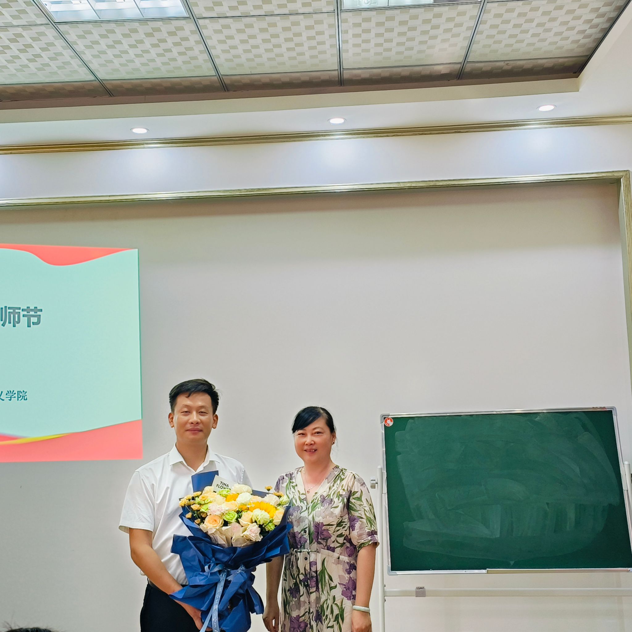 活动伊始,李瑛代表马院党政班子向默默耕耘、辛勤工作的全体马院教师致以最诚挚的节日祝贺,并与学院工会一起向荣获2024年度江西省高校思政课优秀兼职教师的贺丹君、洪恩强,江西省高校优秀思想政治理论课教师许金华,南昌工程学院优秀思政课教师曹贤平等五位教师献花,表示节日的慰问。会上,许金华和曹贤平两位教师代表发言,他们回顾了在校工作的点点滴滴,言语中充满着对思政课教育教学事业的无限热爱,表示将继续努力,讲好思政课,积极做好教育教学和科研工作,为学校和学院发展争得更大荣光。