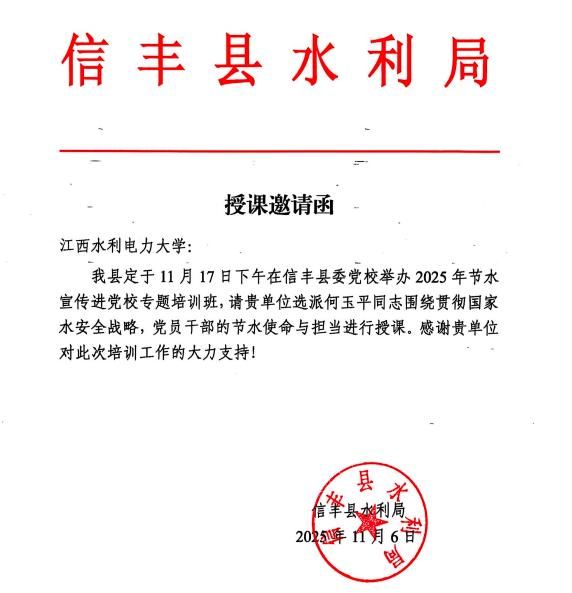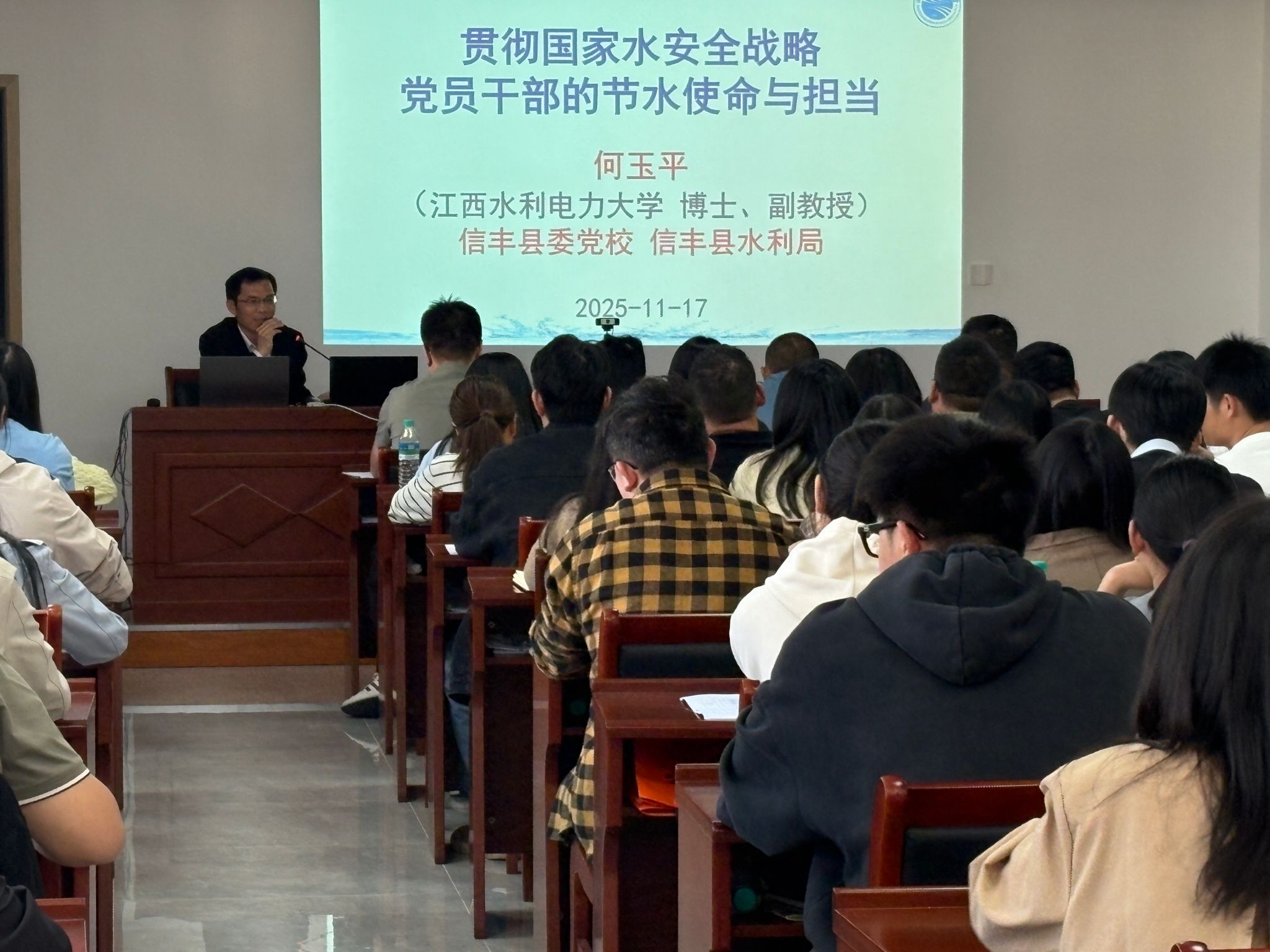11月17日下午,我校水文化研究中心水科普教育研究团队负责人何玉平副教授应邀赴信丰县委党校为党员干部讲授节水主题党课,何老师以“贯彻国家水安全战略 党员干部的节水使命与担当”为主题向党员干部们阐释水资源的珍贵以及节约用水的时代价值,党课围绕着节水的国家战略意义、为什么要节水优先,并从农业、工业、生活等方面阐释节水途径,总结用水效率提高的主要手段,最后从刚性约束、市场之手、科技赋能、全民行动等方面阐述了党员干部在节水方面的使命与担当,此次节水党课不仅普及了水资源相关知识,而且提高了党员干部的节水意识,党课受到学员们的称赞并表示将在今后岗位上践行节水理念,做节水表率。