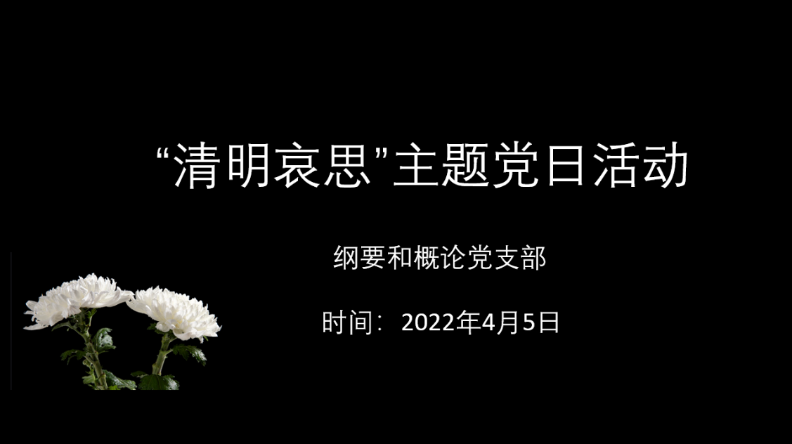4月5日,正值清明节,纲要和概论党支部在云端举行“清明哀思”主题党日活动,活动由支部负责人程宇昌老师主持,全体党员出席活动。