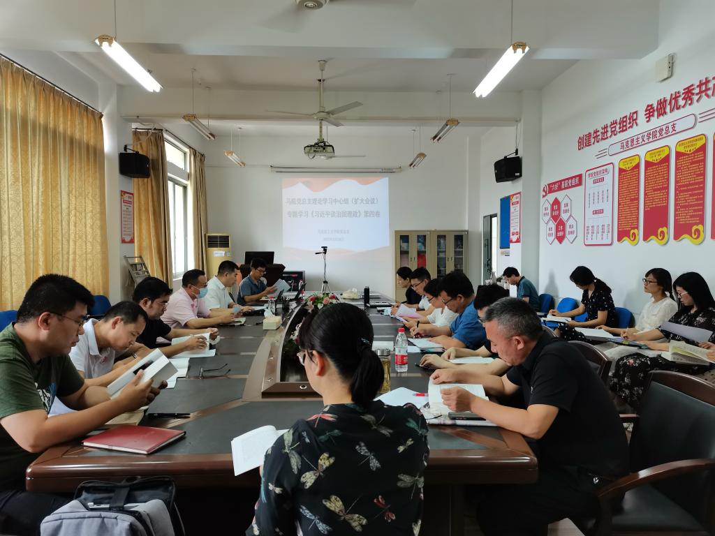 8月30日上午,马克思主义学院党总支理论学习中心组(扩大)会议专题学习《习近平谈治国理政》第四卷。学院党总支班子成员、全体教职工、列席代表参加会议。