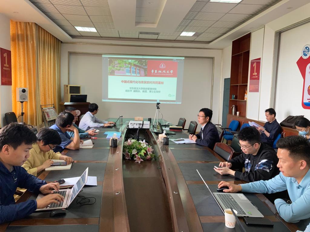 2023年5月23日上午,马克思主义学院在教学北楼A410举办学习贯彻习近平新时代中国特色社会主义思想主题教育专题党课。华东政法大学胡志平教授通过线上腾讯会议的方式作了题为《中国式现代化与农民农村共同富裕》的专题党课报告,马克思主义学院全体教工党员参加。