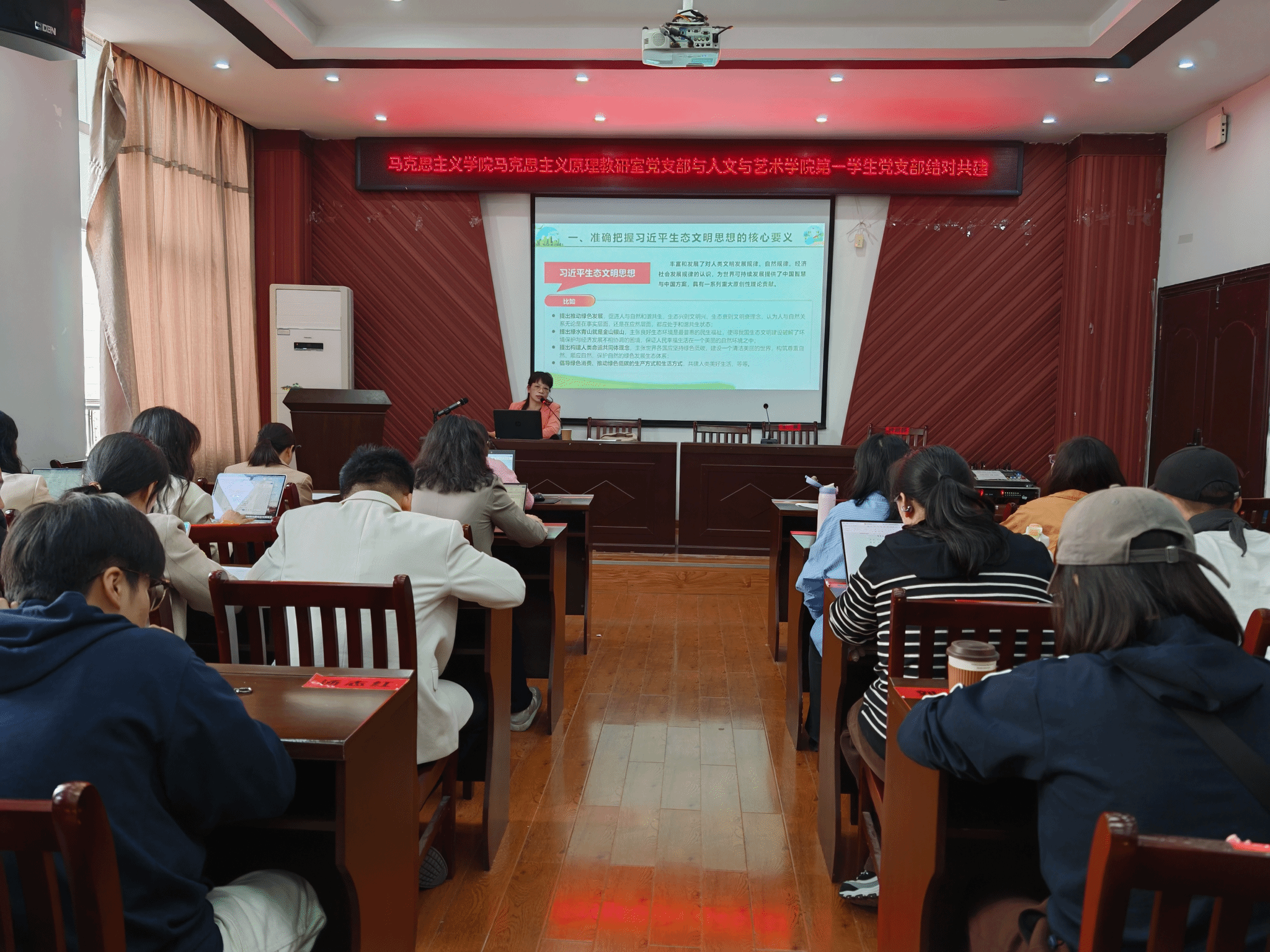 11月12日下午,马克思主义基本原理教研室党支部与人文与艺术学院第一学生党支部开展结对共建活动,活动内容为讲授一堂精品党课,由马克思主义学院党员颜玲授课,两个支部全体师生党员参加了活动。